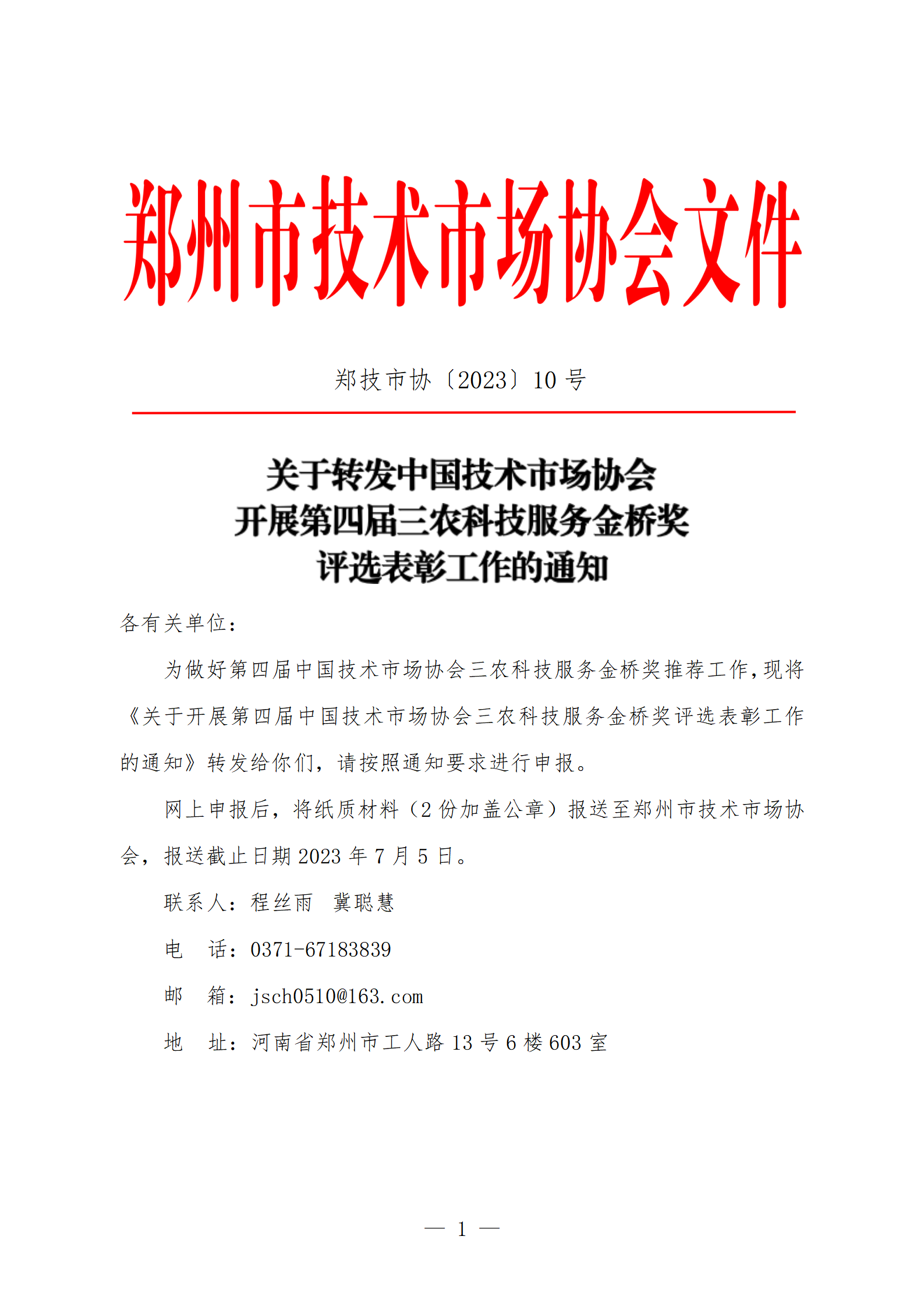 关于开展第四届中国技术市场协会三农金桥奖评选表彰工作的通知.pdf